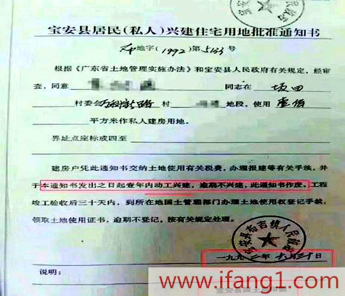 《寶安縣居民(私人)興建住宅用地批準(zhǔn)通知書》目前市面上常說(shuō)的是“兩